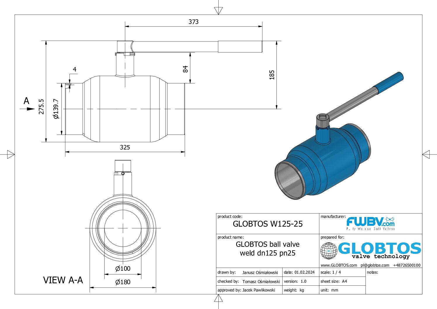 Weld/Weld (W/W) ball valve DN125 PN25 – Reduced Bore bore | GLOBTOS
